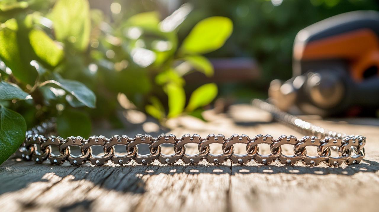 Au-delà du pas, deux autres critères techniques déterminent la compatibilité de votre chaîne avec votre tronçonneuse. La jauge mesure l'épaisseur des maillons d'entraînement qui s'insèrent dans la rainure du guide-chaîne. Cette mesure s'exprime au dixième de millimètre avec des valeurs standardisées de 1,1 millimètre, 1,3 millimètre, 1,5 millimètre et 1,6 millimètre. Pour les chaînes d'abattage spécifiques, deux jauges plus importantes existent avec 2 millimètres et 3,1 millimètres. Le nombre de maillons entraîneurs constitue le troisième paramètre essentiel, déterminé par la longueur du guide-chaîne de votre machine. Une incompatibilité sur l'un de ces trois points rendra la chaîne totalement inutilisable. Il est donc indispensable de vérifier ces trois caractéristiques avant tout achat, soit en consultant le manuel de votre tronçonneuse, soit en examinant les marquages présents sur votre chaîne actuelle.
